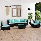 vidaXL Loungegrupp för trädgården med dynor 6 delar konstrotting svart 3102193