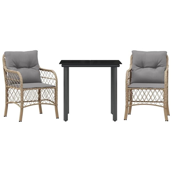 vidaXL Bistrogrupp med dynor 3 delar mixbeige konstrotting 3212159