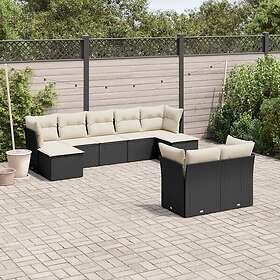 vidaXL Loungegrupp för trädgården m dynor 9 delar svart konstrottning 3250145