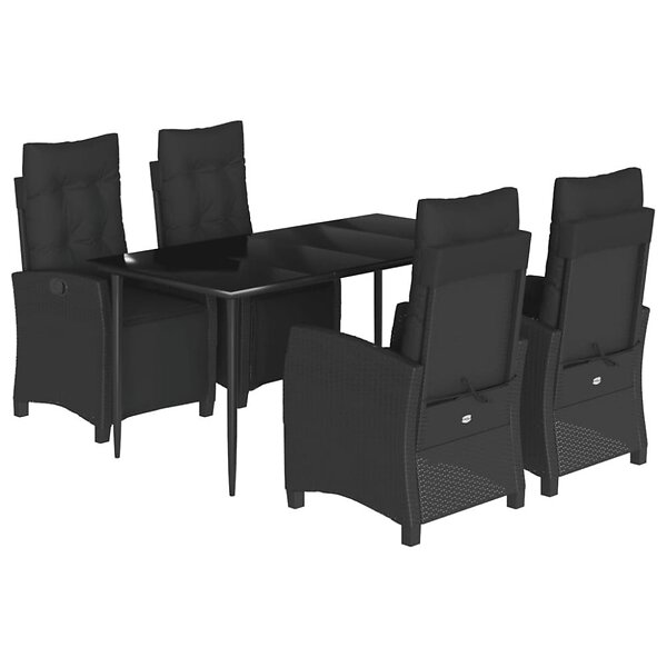 vidaXL Matgrupp för trädgården med dynor 5 delar svart konstrottning 3212963