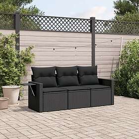 vidaXL Soffgrupp för trädgård med dynor 3 delar svart konstrotting 3252192