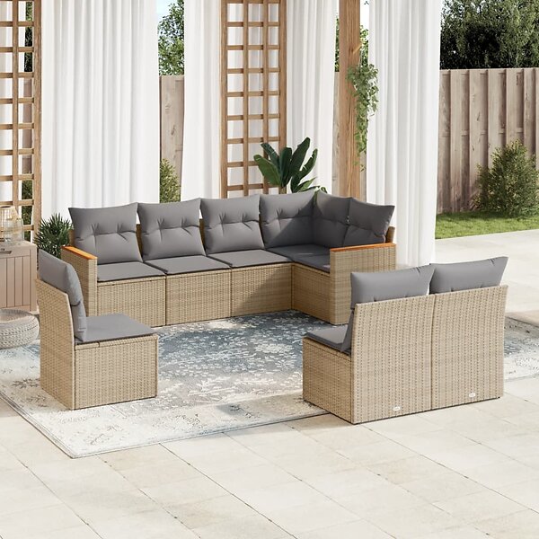 vidaXL Matgrupp för trädgården med dynor 8 delar beige konstrotting 3258447