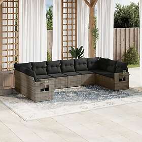 vidaXL Soffgrupp för trädgården med dynor 10 delar grå konstrotting 3220669