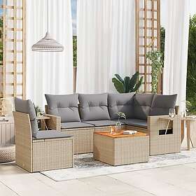vidaXL Soffgrupp för trädgård med dynor 6 delar mixbeige konstrotting 3256899