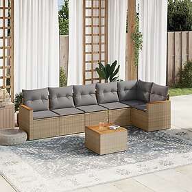 vidaXL Matgrupp för trädgården med dynor 7 delar beige konstrotting 3254126