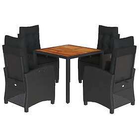 vidaXL Matgrupp för trädgården med dynor 5 delar svart konstrottning 3212663