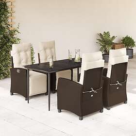 vidaXL Matgrupp för trädgården med dynor 5 delar brun konstrotting 3212977