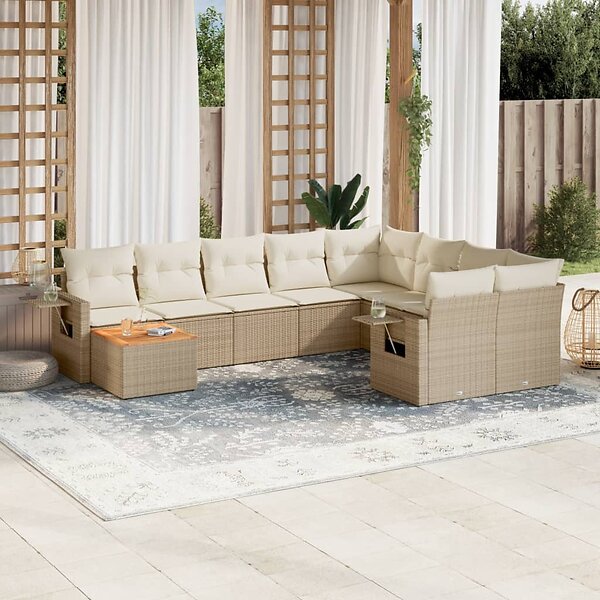 vidaXL Soffgrupp för trädgård med dynor 10 delar beige konstrotting 3257059