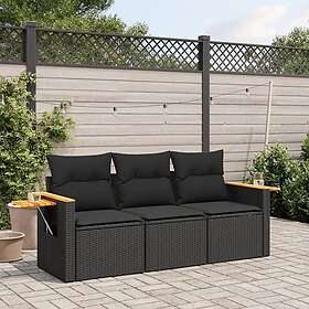 vidaXL Soffgrupp för trädgård med dynor 3 delar svart konstrotting 3226594