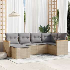 vidaXL Soffgrupp för trädgård med dynor 6 delar mixbeige konstrotting 3226178