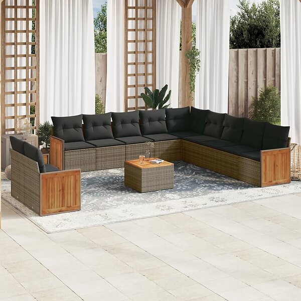vidaXL Soffgrupp för trädgården 12 delar med dynor grå konstrotting 3227817