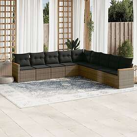 vidaXL Loungegrupp för trädgården m dynor 9 delar grå konstrotting 3226060