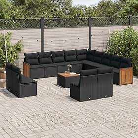 vidaXL Soffgrupp för trädgård med dynor 14 delar svart konstrotting 3228169