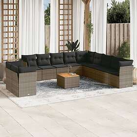 vidaXL Soffgrupp för trädgården 12 delar med dynor grå konstrotting 3256060