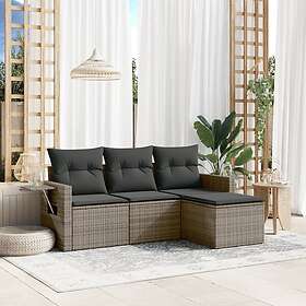 vidaXL Trädgårdssoffset med dynor 4 delar konstrotting grå 3220069
