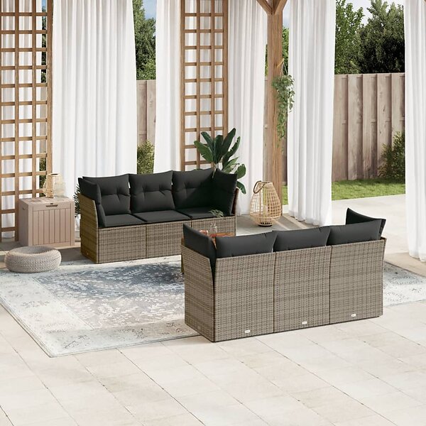 vidaXL Soffgrupp för trädgården med dynor 7 delar grå konstrotting 3255822