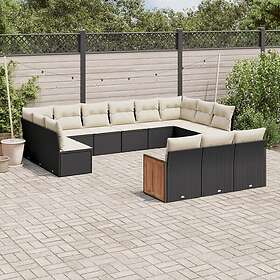 vidaXL Soffgrupp för trädgården med dynor 15 delar svart konstrotting 3228135