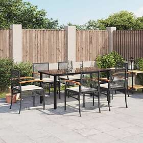 vidaXL Matgrupp för trädgården med dynor 7 delar svart konstrotting 3213607