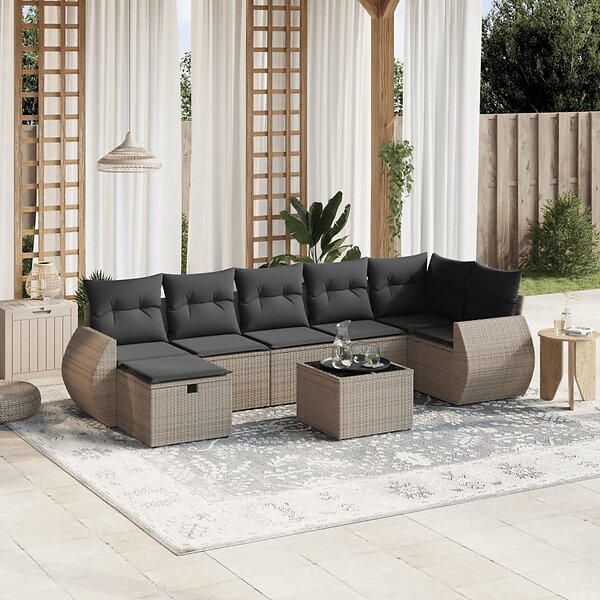 vidaXL Loungegrupp för trädgården med dynor 8 delar grå konstrotting 3264136