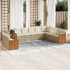 vidaXL Soffgrupp för trädgård med dynor 10 delar beige konstrotting 3260196