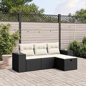 vidaXL Soffgrupp för trädgård med dynor 4 delar svart konstrotting 3264372