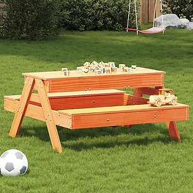 vidaXL Picknickbord med sandlåda för barn vaxbrun massivt furu 844655