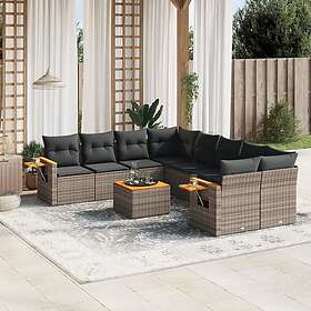 vidaXL Loungegrupp för trädgården m dynor 9 delar grå konstrotting 3227971