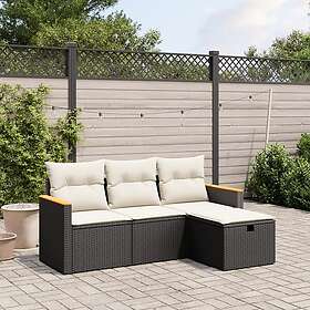 vidaXL Soffgrupp för trädgård med dynor 4 delar svart konstrotting 3265270