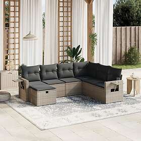 vidaXL Soffgrupp för trädgården med dynor 7 delar grå konstrotting 3263836