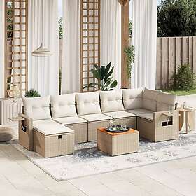 vidaXL Matgrupp för trädgården med dynor 8 delar beige konstrotting 3264957