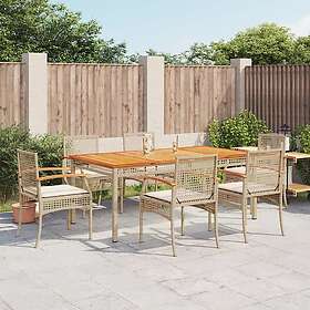 vidaXL Matgrupp för trädgården med dynor 7 delar beige konstrotting 3213582