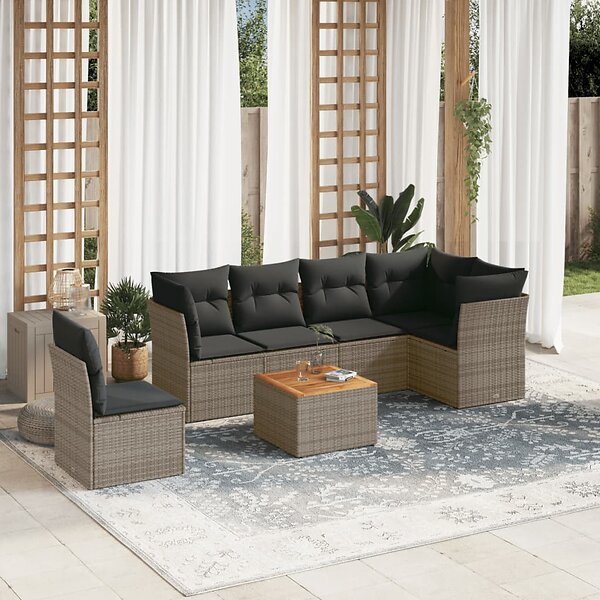 vidaXL Soffgrupp för trädgården med dynor 7 delar grå konstrotting 3255997