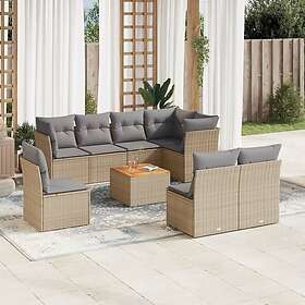 vidaXL Soffgrupp för trädgård med dynor 9 delar mixbeige konstrotting 3256073