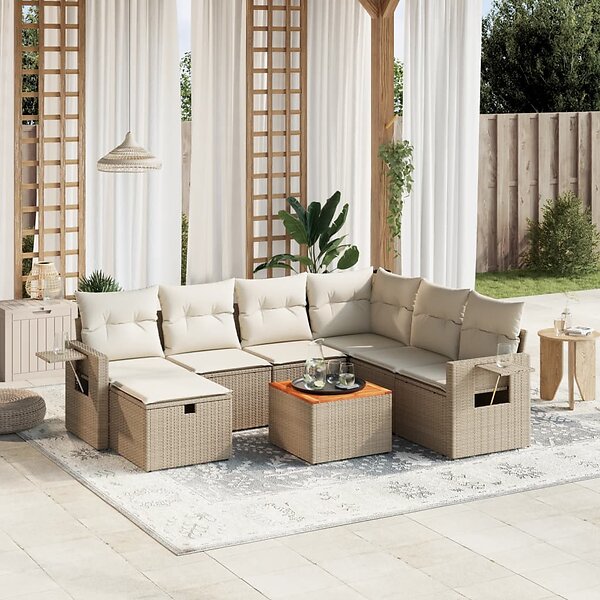 vidaXL Matgrupp för trädgården med dynor 8 delar beige konstrotting 3264964
