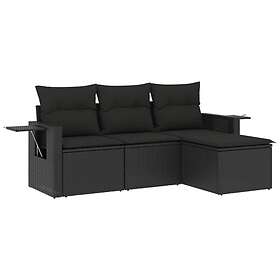 vidaXL Soffgrupp för trädgård med dynor 4 delar svart konstrotting 3220064