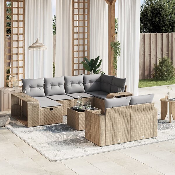 vidaXL Loungegrupp för trädgården m. dynor 11 delar beige konstrotting 3266249