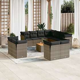 vidaXL Soffgrupp för trädgården 12 delar med dynor grå konstrotting 3256277