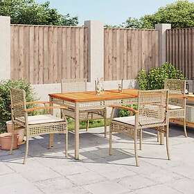 vidaXL Matgrupp för trädgården med dynor 5 delar beige konstrotting 3213580