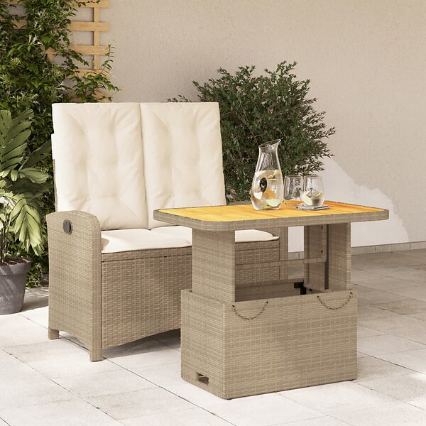 vidaXL Matgrupp för trädgården med dynor 2 delar beige konstrotting 3277358