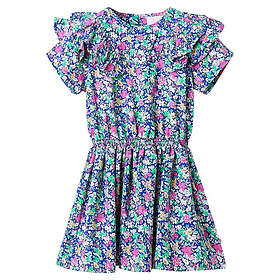 vidaXL Klänning med volangärmar för barn koboltblå 128 11552 (Jr)