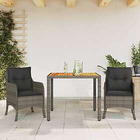 vidaXL Matgrupp för trädgården med dynor 3 delar konstrottning grå 3211872