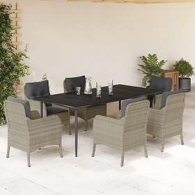 vidaXL Matgrupp för trädgården med dynor 7 delar ljusgrå konstrotting 3211995