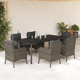 vidaXL Matgrupp för trädgården med dynor 7 delar grå konstrotting 3211960