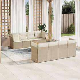 vidaXL Soffgrupp för trädgården med dynor 9 delar beige konstrotting 3256373