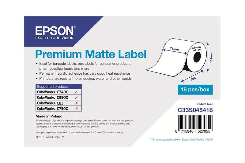 Epson C33S045418 premium matt etikett 76mm x 35m (original)