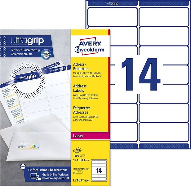Avery Adressetiketter 99,1 x 38,1mm L7163-100 1,400st