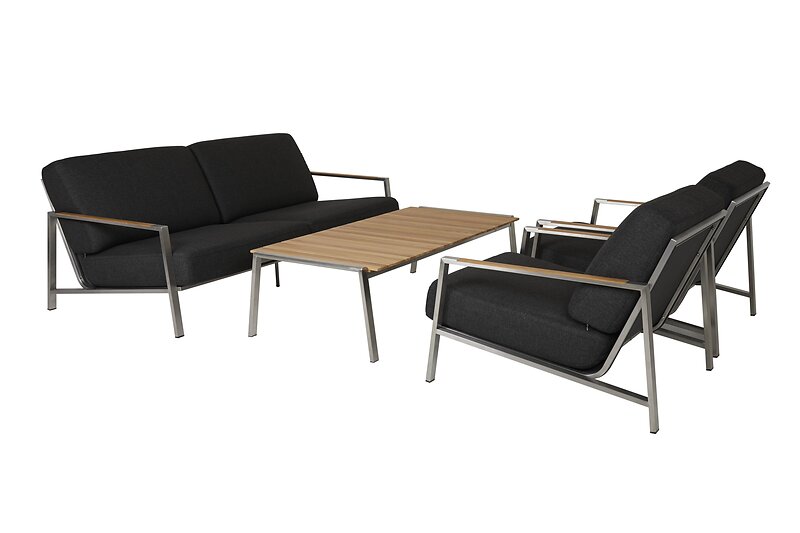 Brafab Naos soffgrupp Rostfritt med grå dyna 2,5-sitssoffa, 2 fåtöljer & bord