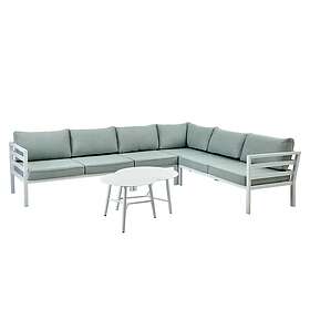 Brafab Weldon soffgrupp Vit med blå dyna 2st 2-sitsmoduler, hörn & 2 bord