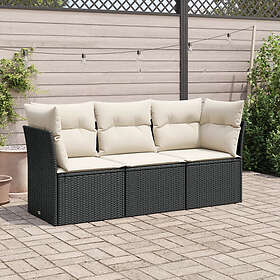 vidaXL Soffgrupp för trädgård med dynor 3 delar svart konstrotting 3249045