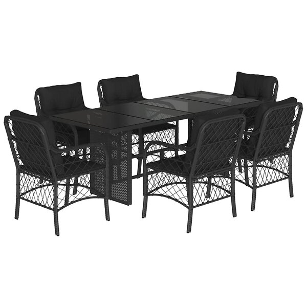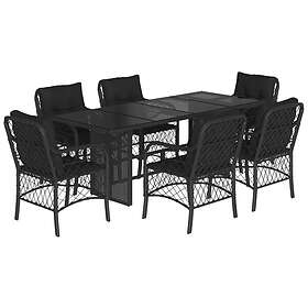 vidaXL Matgrupp för trädgården med dynor 7 delar svart konstrotting 3212056
